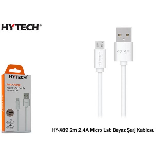 Hytech HY-X89 2m 2.4A Micro Usb Beyaz Şarj Kablosu