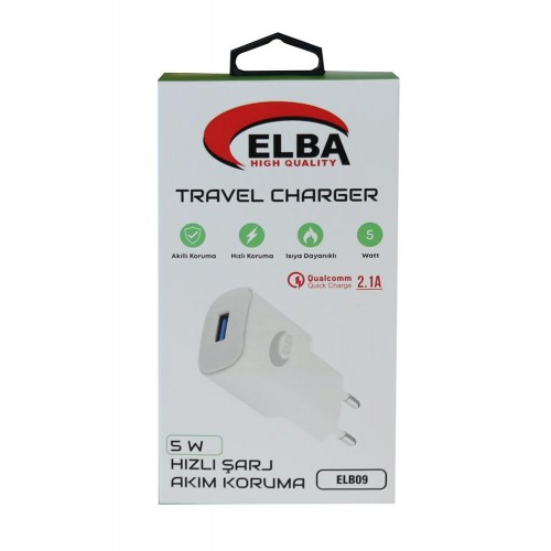 Elba Elb09 5W 2.1A Hızlı Şarj Akıllı Koruma Usb EV Şarj Kafa