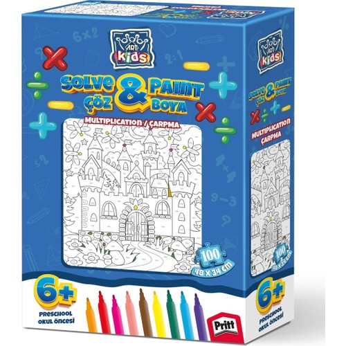 • Açıklama :Art Kids Çöz Boya serisinde Toplama, Çıkarma, Çarpma ve Bölme’yi kapsayan, dört işlemin tamamını, boyama yaparak ve yapboz parçalarını birleştirerek, çocuklarımız keyifli ve kalıcı şekilde öğrenme fırsatı bulacaktır. Tamamen sürdürülebilir ham maddelerden üretilen, çevre dostu ürünlerimiz ile çocuklarımızın güvenle öğrenmelerine katkıda bulunacak ürünlerimiz, gerekli tüm kalite standartlarına uygun bir şekilde çocuklarımızın beğenisine sunulmaktadır. Çöz Boya serisini faydaları; • Matematik ve sayılara karşı oluşan kaygı durumunun azalmasına yardımcı olur • Resim kabiliyetini geliştirmek için keyifli ve eğitici bir yoldur • Görsel hafızanın gelişmesine katkıda bulunur • Sayıları ve renkleri öğrenmede ciddi bir rol oynar • El becerilerinin gelişmesine katkıda bulunur • Zihinsel gelişim için etkin bir rol oynar Nasıl Yapılır ? 100 Parça Puzzle tamamlanır. Boyanması gereken bölümler işlem sonucu karşılığındaki gösterilen renkte boyanır. Kutu İçeriği : 100 Parça Puzzle 12’li pritt keçeli kalem