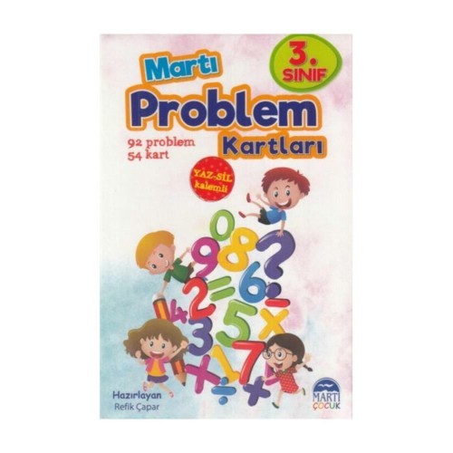 Martı problem kartları” ile artık problem yok... Bu kartlar, tüm yılın ünite kazanımlarına göre, birbirinden renkli görseller, hatırlatmalar ve kurgu ile hazırlandı. Martı problem kartları çocuklarımıza hem okulda ders işlenişi sırasında yardımcı olacak hem de evde öğrendiklerini pekiştirmelerinde yardımcı olacaktır. 92 problem ve 54 adet karttan oluşmaktadır. Problemleri çözüm için bırakılan boş alana çocuklarımız yaz-Sil kalem ile çözebilir, çözümde kullandığı işlemleri işlem kutusunda işaretleyerek bir sonraki problem için yola devam edebilirler... Problemler çözüm için senden yardım bekliyor... Iyi eğlenceler, iyi çözümler... Problem çok, problem yok, çözüm sende...
