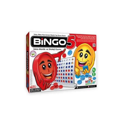 Mortoys Bingo 5 NASIL OYNANIR? Oyuna kura ile başlanılır. Oyun iki kişi arasında oynanır. Sırası gelen, pullarını herhangi bir boşluktan aşağı doğru bırakır. Amaç yatay, dikey ve çapraz olmak şartıyla İlk beşliyi yapmaktır. BİNGO 5 SİZE NELER KAZANDIRIR? Zenginleştirilmiş eğitim modeli yenilikçi, üretken, görsel algısı güçlü, düşünme becerisi gelişmiş bireyler yetiştirir. Yapılandırmacı yaklaşıma uygun olup okullarda oyun ve fiziki etkinlik ders saatlerinde uygulanmaktadır. Satın aldığınız oyunu evde ailenizle veya okulda arkadaşlarınızla oynayabilirsiniz.