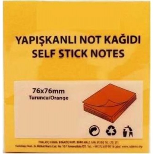 Rubenis Yapışkanlı Not Kağıdı 76x76 MM 50 Şeffaf Turuncu 50 YP RPS-153 (1 Adet)