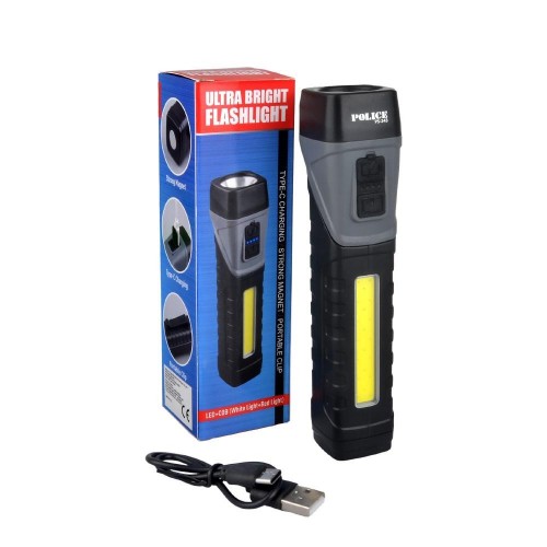 Polıce PS-343 Magnetli, 90 Derece Oynar Başlık, Kırmızı İkaz Işıklı Şarjlı El Feneri