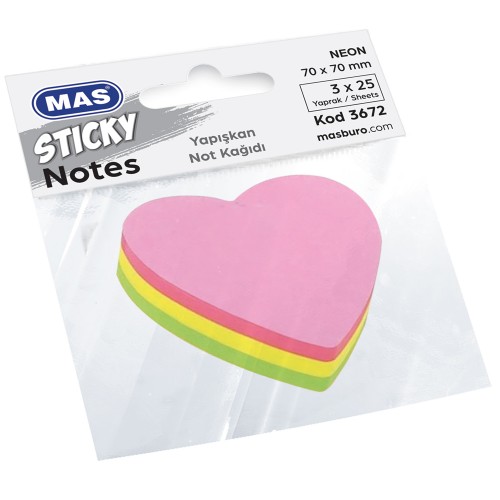 Mas Yapışkanlı Not kağıt 75 Syf Şekilli Kalp 3672 (1 Adet)