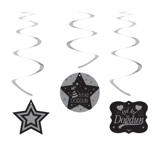 Kikajopy SW13 İyi ki Doğdun Gümüş Siyah Sarkıt Süs