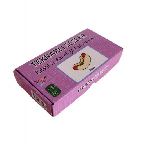 Tekrarlı Sesler Kitap Açıklaması Kimin için Kullanılmalı: Tekrarlı Sözcük kartları fonolojik bozukluğu olan çocuklar ile okulöncesi eğitimi alan çocukların eğitiminde kullanılmalıdır. Ses farkındalığın oluşması okuma – yazma için temel koşullardan biridir. Amaç: Seslerin belirginleştirilip çocuk tarafından algılanmasını sağlamak ve bu doğrultudaki işitsel algıyı destelemektir. Sesleri işitsel olarak ayırt etmeyi öğrenen çocuk, bu sesleri kullanırken doğru olarak söyleyecek ve duyduğu – kullandığı sözcüklerdeki seslere karşı duyarlılığı artacaktır. Seslerin doğru üretilmesi çok önemli ve gereklidir. Özellikle sesleri ayırt etmekte güçlük çeken ve karıştıran çocuklar okuma yazma sürecinde zorluk çeker. Aynı zamanda sosyal gelişimleri de olumsuz etkilenir. Nasıl Kullanılır: Kartı göstermeden önce birkaç defa hızlıca karttaki sözcüğü art arda tekrar edin: Sosis, biber, lale vb. Sonra elinizi masaya veya dizinize vurarak ritmik bir şekilde söyleyin.Karttaki görselleri göstererek 4-5 defa normal bir tonda ve hızda tekrar edin. Sonra elinizi masaya veya dizinize vurarak ritmik bir şekilde söyleyin.Söylediğiniz sözcüğe ait görseli göstermesini sağlayın. Bunu 4-5 defa tekrar edin. Söylediğim sözcüğü göster: Sosis, biber, lale vb.Görseli gösterin ve bu nedir, diye sorun.Siz söyleyin, o da sizi taklit ederek tekrarlasın.Benzer uygulamayı kartların arkasındaki tekrarlı heceler için de yapın.NOT: Kartlarda herhangi bir sıralama yoktur. Karışık olarak çalışabilirsiniz. (Tanıtım Bülteninden) Kitap Adı: Tekrarlı SeslerYazar:KolektifYayınevi: Yuka KidsHamur Tipi: KartonSayfa Sayısı: 48Ebat: 6 x 8İlk Baskı Yılı: 2022Baskı Sayısı: 1. BasımDil: TürkçeBarkod: 9786057871596