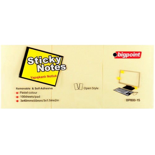 Bigpoint Yapışkanlı Not Kağıdı 3 Lü 40x50 Sarı BP800-15 (1 Adet)