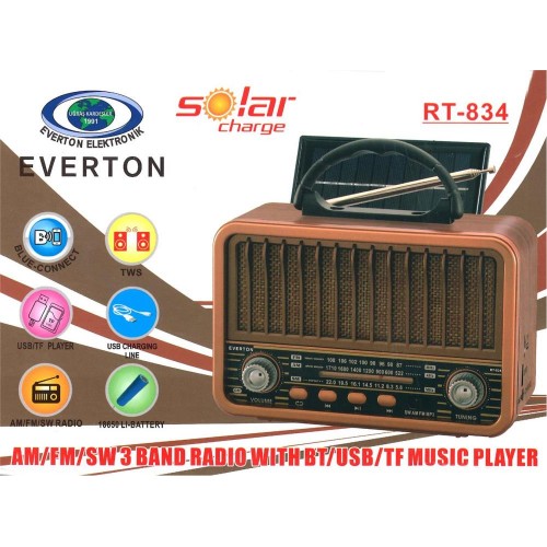 Everton Rt-834 Bluetooth Radyo-TF card-usb-Kumandalı Nostaljik Radyo Solar Güneş Panelli