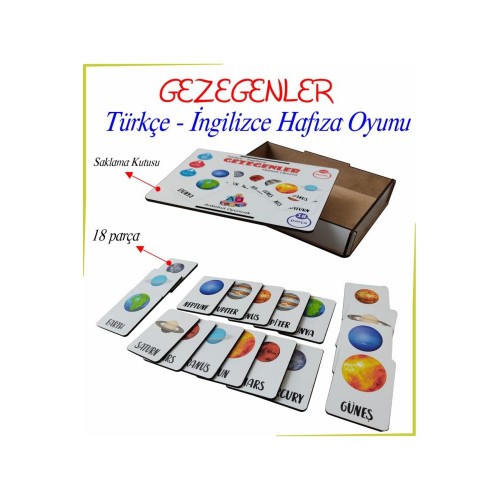 18 parça gezegenler hafıza oyunu ; Kutusu ile gönderim yapılmaktardır. ; Özel uv baskı ile renklendirilmiştir.;