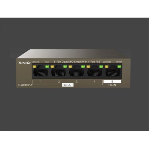 Tenda G0-5G-PoE 5 Port 4 Port Poe+ 10-100-1000 Switch Çelik Kasa POE Router