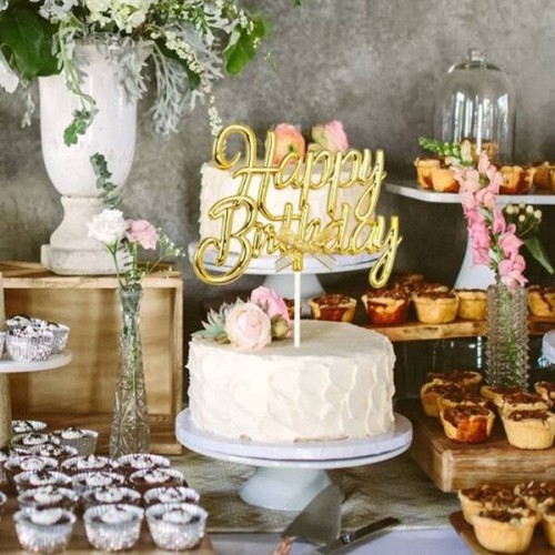 Krom Renk Pasta Üzeri Çubuklu Happy Birthday