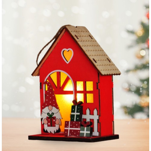 Kika Yılbaşı Dekoru -Ahşap Işıklı Yılbaşı Evi-