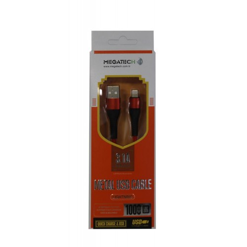 Megatech 3.1A Örgülü A Serisi IPH7 1000M Data Kablosu Kırmızı Renk