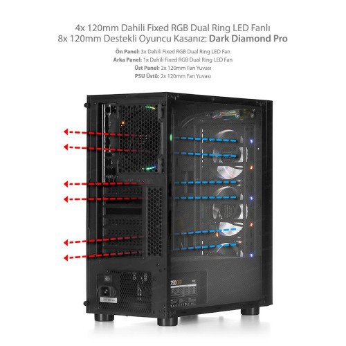 Dark Diamond PRO 4x12cm Fan, 1x USB3.0, 2x USB2.0 Full Akvaryum Oyuncu Kasası (Psu yok)
