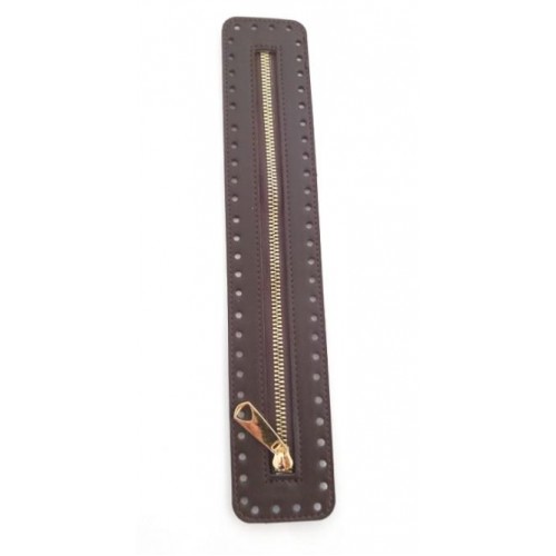 Çanta Aksesuar Derili Fermuar Yeni Model Koyu Kahve 30 Cm Light Gold