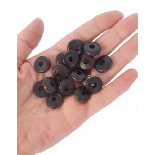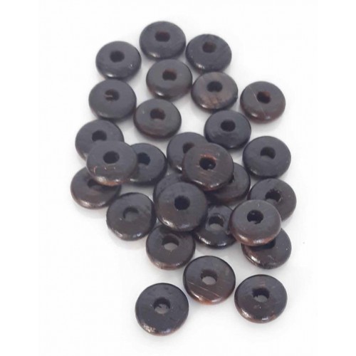 Çanta Aksesuar 15 Mm 10 Adet Koyu Renk Ahşap Yassı Boncuk
