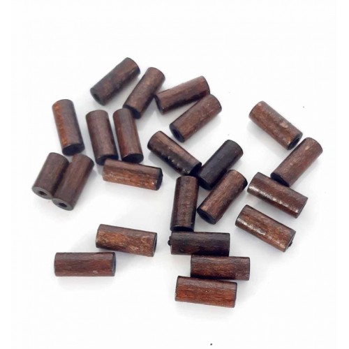 Çanta Aksesuar 20 Mm 10 Adet Koyu Renk Ahşap Silindir Boncuk