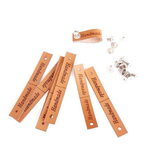 Üzerinde Handmade yazmaktadır. İki kenarında dikme delikleri açılmıştır. Dikme deliklerinden dikilerek örgü çantaya monte edilir.