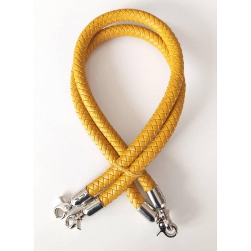 60-65 cm civarında örme suni deri çanta sapı. Uç Metalleri gümüş renklidir. Uçlardaki yaylı kancalar açılıp kapanabilen özelliktedir. Örgüye doğrudan monte edebilirsiniz. Yaylı halka veya D halka kullanarak da monte edebilirsiniz.