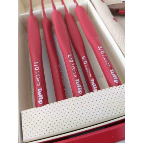 Tulip Etimo Red 8 adet tığdan oluşur. 1.80 mm 2.00 mm 2.20mm 2.50 mm 3.00 mm 3.50 mm 4.00 mm 5.00 mm