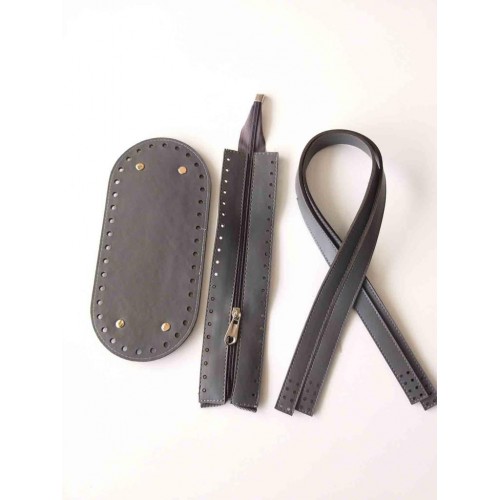 Suni Deri Fermaur 28x6.5 cm dir Taban 25x12cm Oval Çift Sap 80 cm Örmeye taban üzerindeki deliklerden başlanır artırılarak yukarı çıkılır çantanın ağız kısmı büyük olacak şekilde fermuar yerleştirilir.