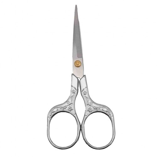 Çanta Aksesuar Vintage Makas Çiçek Desenli Gümüş