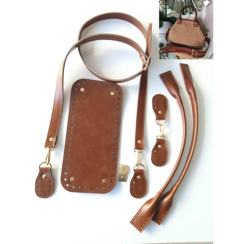 Suni deriden üretilmiştir. Tutma sapı kullanım yeri dikkate alınarak çift kat olarak tasarlanmıştır. Setin içeriğinde; 1 adet ayarlı ve böceli uzun sap Bir çift kısa pelikan sap 1 Adet 25x12 taban Kancalı böce mevcuttur. Metal aparat light gold deri rengi tabadır. Aşağıdaki videoda sapların monte edilmiş hali mevcuttur. Tüm örgü cantalar için uygundur.
