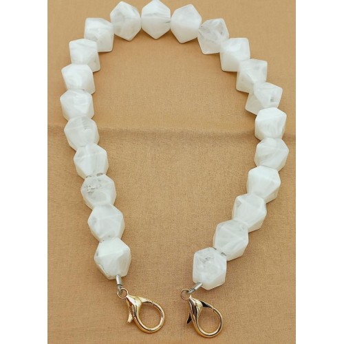 Çanta Aksesuar Akrilik Sekizgen Boncuklu Beyaz Renk 50 Cm Çanta Sapı
