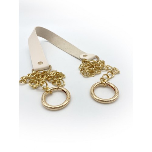 Çanta Aksesuar Tek Kat Suni Deri Krem Renk İnce Zincirli Sap Light Gold Metal