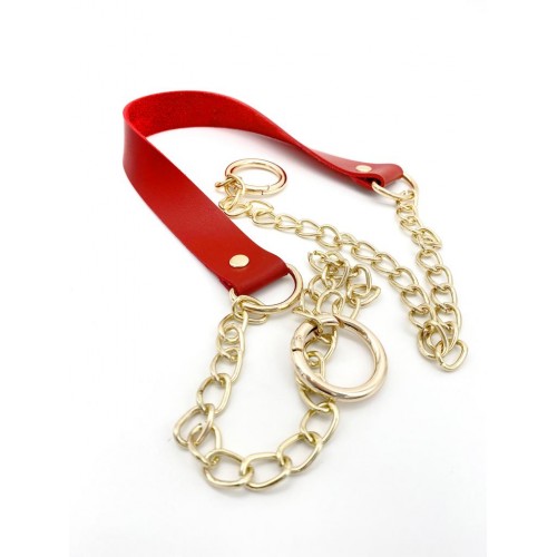 Çanta Aksesuar Tek Kat Suni Deri Kırmızı Renk İnce Zincirli Sap Light Gold Metal