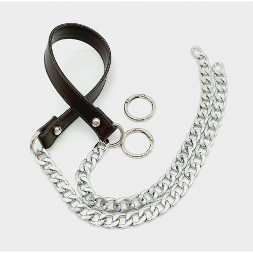 Çanta Aksesuar Suni Deri Dikişli Gümüş Zincirli Kahverengi Çanta Sapı