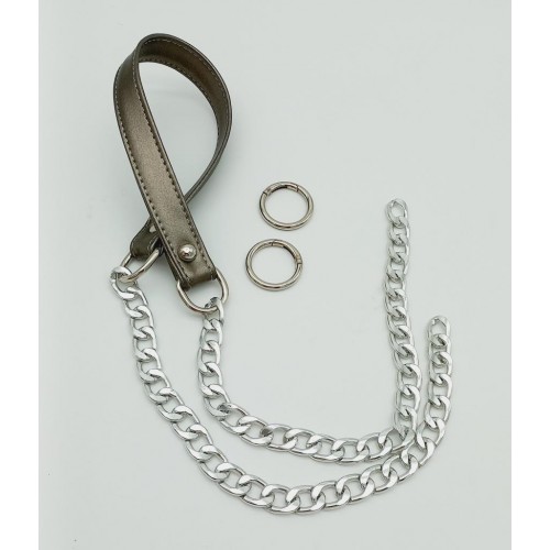 Çanta Aksesuar Suni Deri Dikişli Gümüş Zincirli Parlak Gri Renk Çanta Sapı