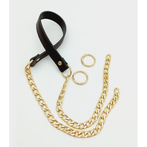 Çanta Aksesuar Suni Deri Dikişli Kahverengi Light Gold Zincirli Çanta Sapı