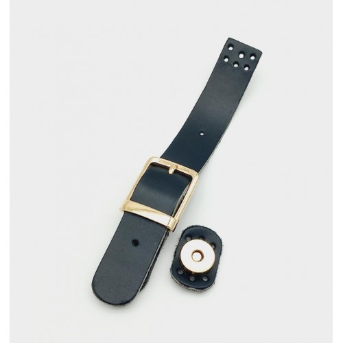 Çanta Aksesuar 18x2,3 cm Siyah Gerçek Deri Tokalı Çanta Kapağı Light Gold Metalli