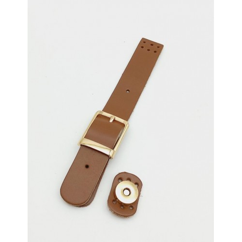 Çanta Aksesuar 18x2,3 cm Sütlü Kahve Gerçek Deri Tokalı Çanta Kapağı Light Gold Metalli