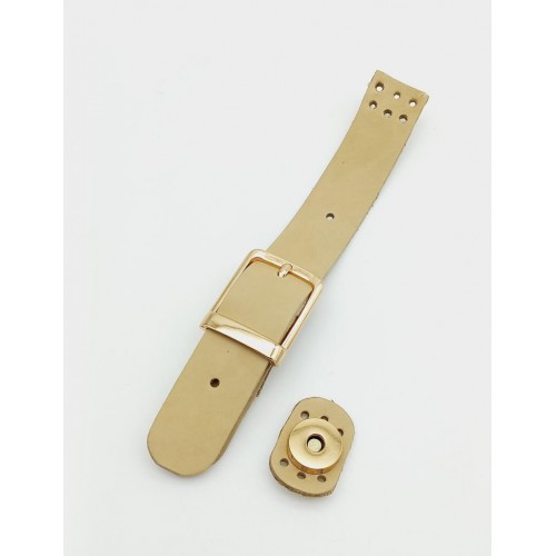 Çanta Aksesuar 18x2,3 cm Ham (Doğal) Gerçek Deri Tokalı Çanta Kapağı Light Gold Metalli
