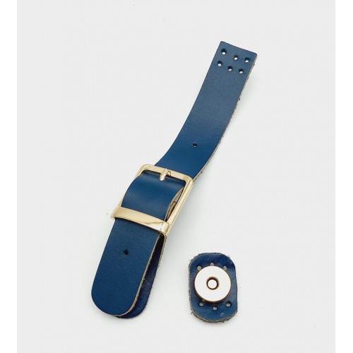 Çanta Aksesuar 18x2,3 cm Lacivert Gerçek Deri Tokalı Çanta Kapağı Light Gold Metalli
