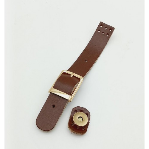 Çanta Aksesuar 18x2,3 cm Kızıl Kahve Gerçek Deri Tokalı Çanta Kapağı Light Gold Metalli