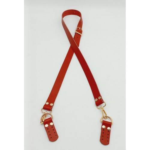 Çanta Aksesuar Gerçek Deri Ayarlı Uzun Sap 2.3X130 Kırmızı Light Gold Metalli