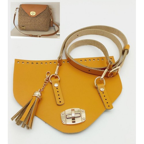 Çanta Aksesuar Gerçek Deri Çanta Seti Püsküllü Hardal Gold Metalli