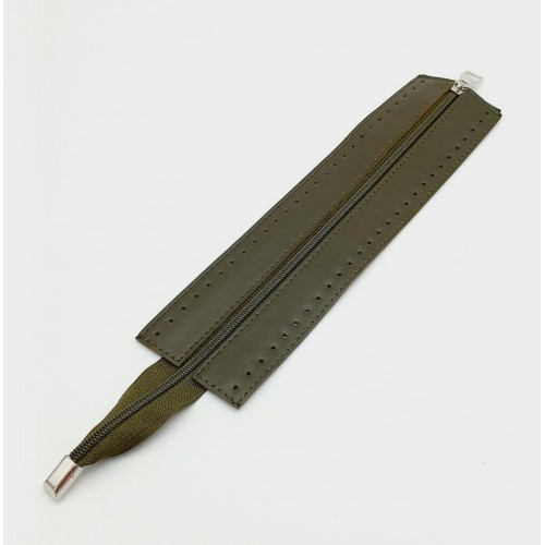 Çanta Aksesuar Haki Renk 28 Cm Derili Fermuar Gümüş Metalli