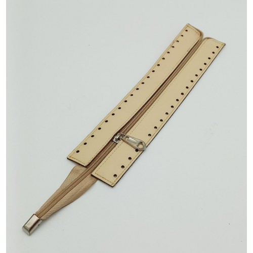 Deri Kısım: Uzunluk: 28 cm Genişlik: 6,5 cm Metal Rengi: Gümüş Suni deriden üretilmiştir. Kenarlarında delikler tığ ile monte etmek için tasarlanmıştır. Örgünün kendi ipi ile dikerek de montaj yapılabilir.