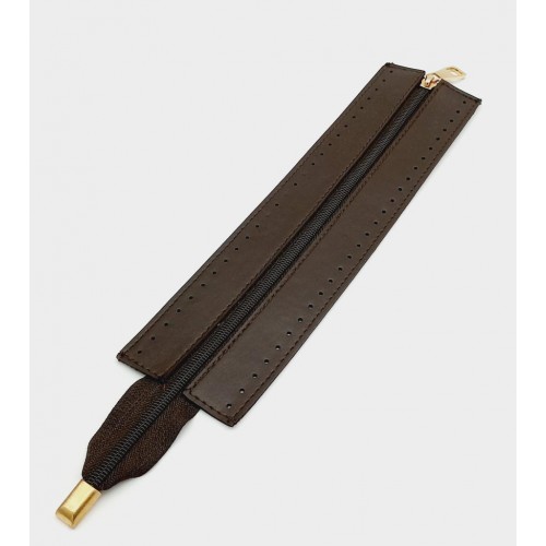 Çanta Aksesuar Kahverengi Renk 28 Cm Derili Fermuar Light Gold Metalli