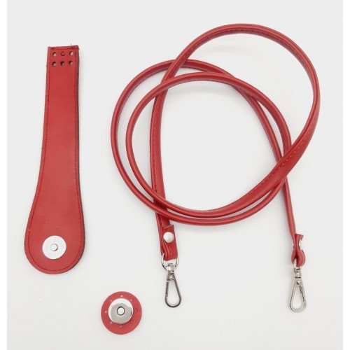 Çanta Aksesuar Suni Deri Cep Telefonu Seti Dikişli Kırmızı Renk Gümüş Metalli