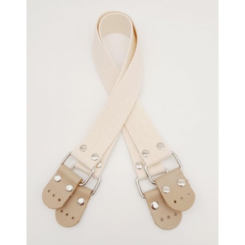 Çanta Aksesuar Pamuklu Kolon 57X3 Cm Derili Krem Renk Çanta Sapı Gümüş Metalli