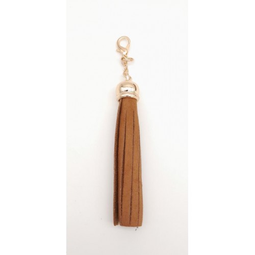 Çanta Aksesuar Süet Nubuk Deri Kovanlı Püskül Taba Light Gold Metalli