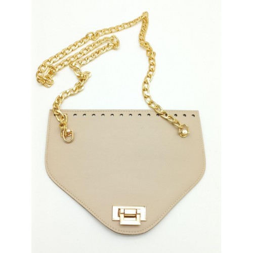 Çanta Aksesuar Koyu Bej Renk Suni Deri 100 cm Zincirli 22.5x18 cm Kapak Light Gold Metalli