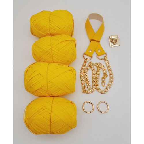 Çanta Aksesuar Rafya Ve Sarı Renk Zincirli Sap Çanta Seti
