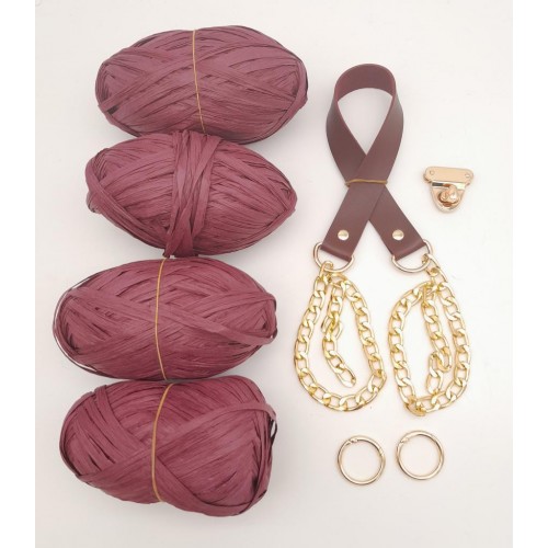 Çanta Aksesuar Rafya Ve Bordo Renk Zincirli Sap Çanta Seti