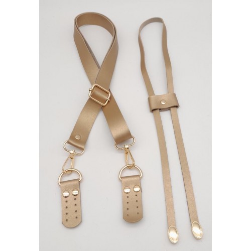 • Çanta Aksesuar Gold Renk Suni Deri 120X2.4 Cm Ayarlı Çanta Saplı Büzgülü Set Light Gold Metal